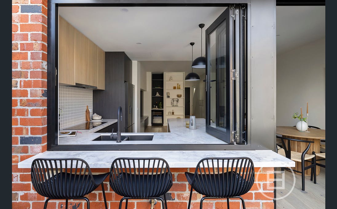 The owners wanted to create a functional space that blended an outdoor bar into their kitchen space.