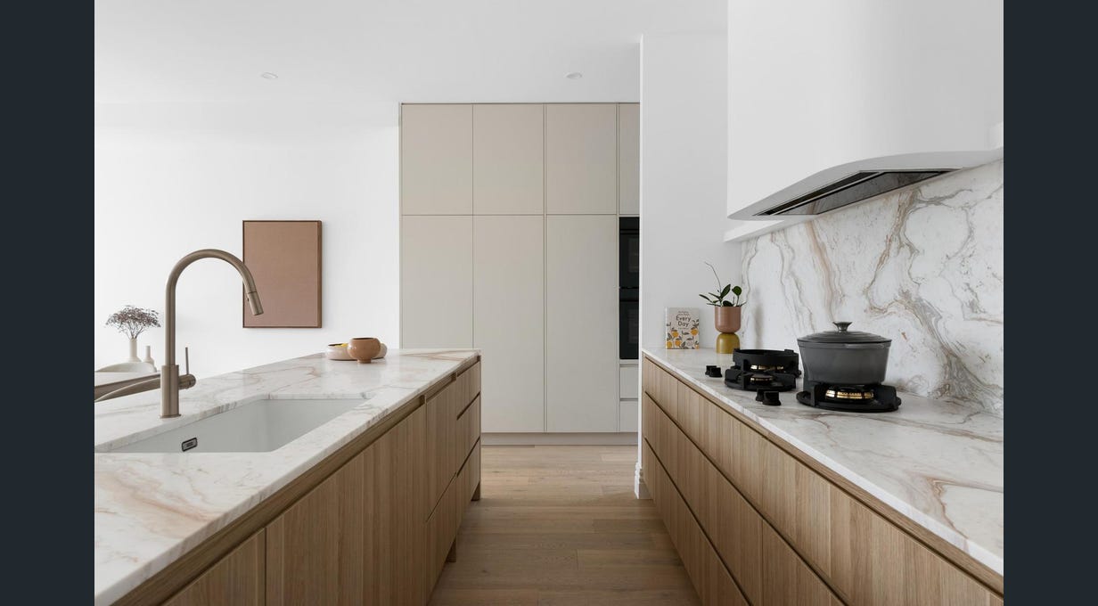 The combination of 2PAC and Boston Oak finishes, along with the stunning stone benchtops, has exceeded our expectations.