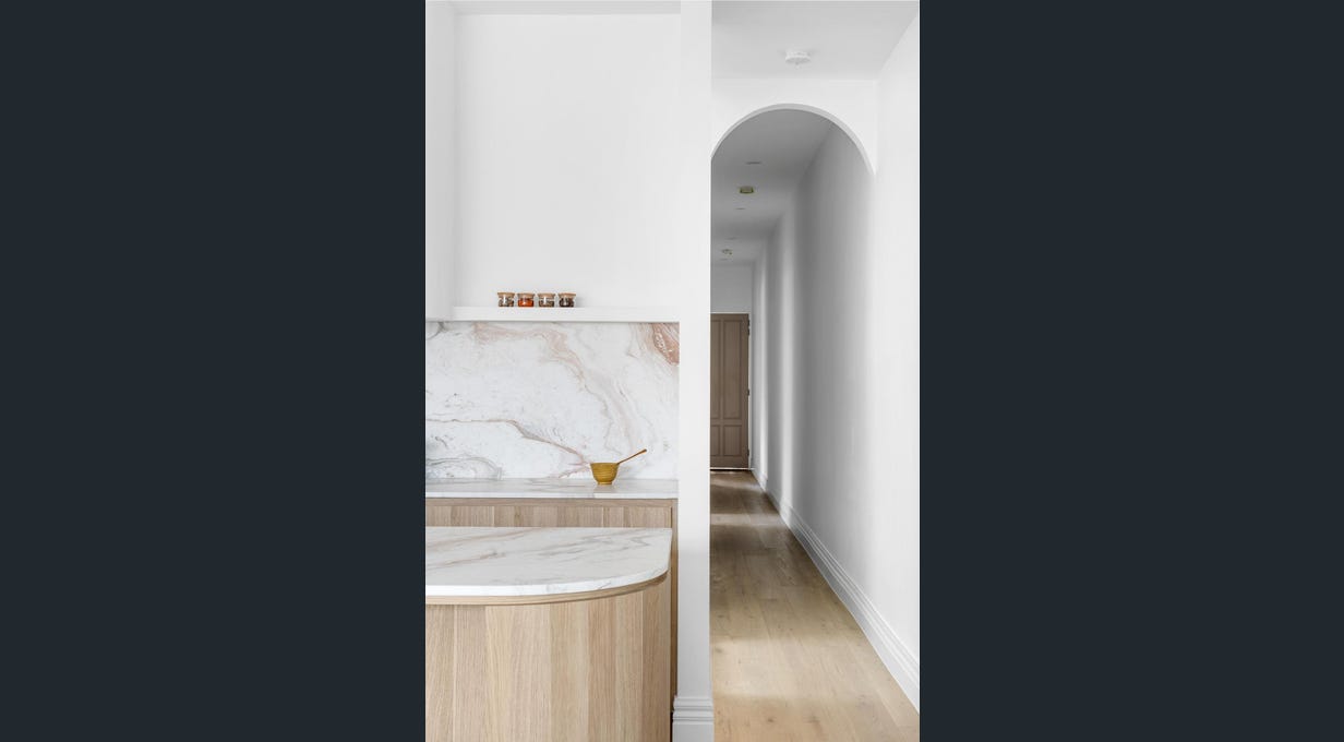 Armstrongs Cabinetry collaborated closely with the client to bring their vision to life. The kitchen features a sophisticated combination of 2PAC painted doors and Polytec's Boston Oak Woodmatt finish, offering a harmonious blend of sleek surfaces and natural textures.